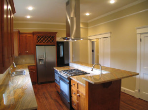 New high-end appliances, prep sink in the island.